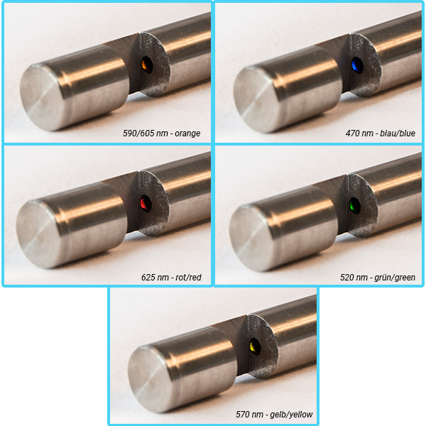 - 6 Wellenlängen über einen weiten Bereich: 470, 520, 570, 590, 605, 625 nm